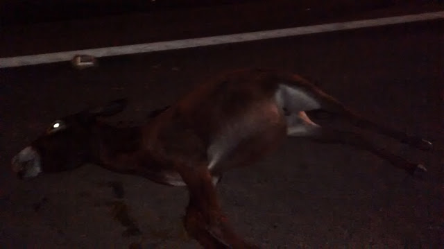 Cachoeirinha colidiu violentamente sua moto em um jumento que