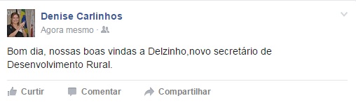 de Delzinho ocorreu através da página do Facebook da prefeita Denise.