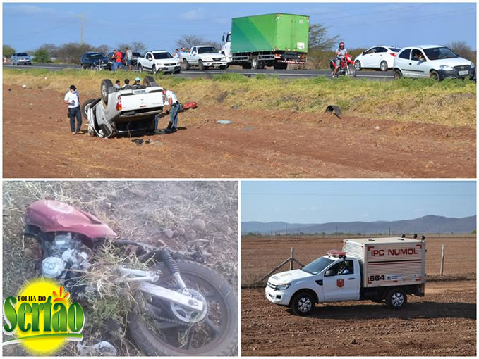 ao retornar, abalroou na Moto, depois capotou as margens da BR 230.