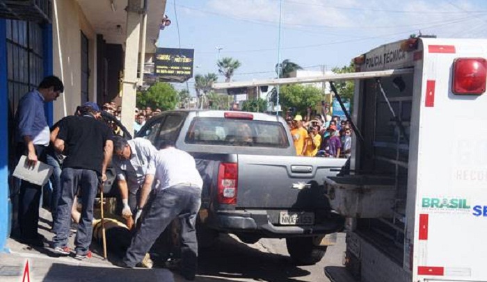corpo do comerciante, foi removido do local, por um a equipe do ITEP,