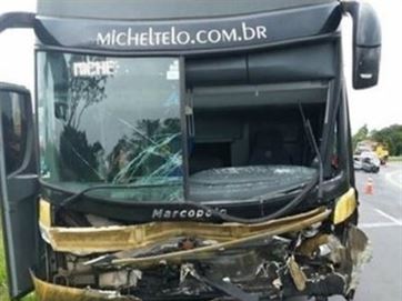 O ônibus que transportava a equipe do cantor Michel Teló se envolveu em