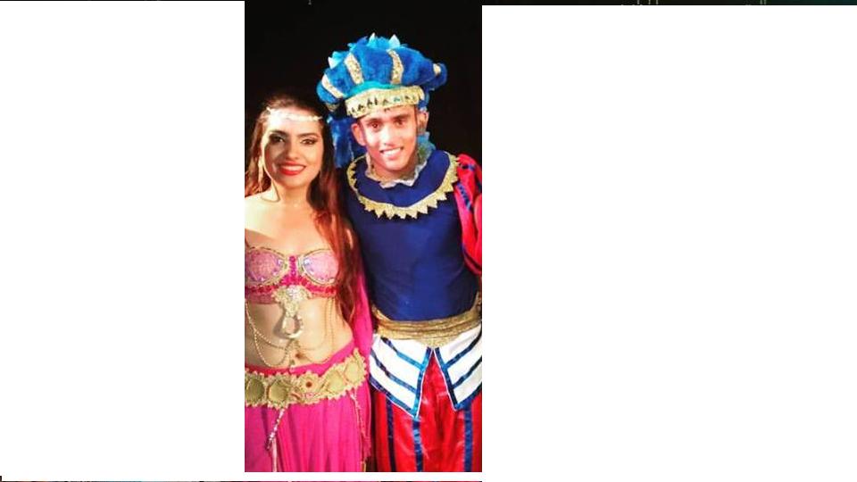 Esse o figurino do casal vem assinado pelo teatro logo e artista