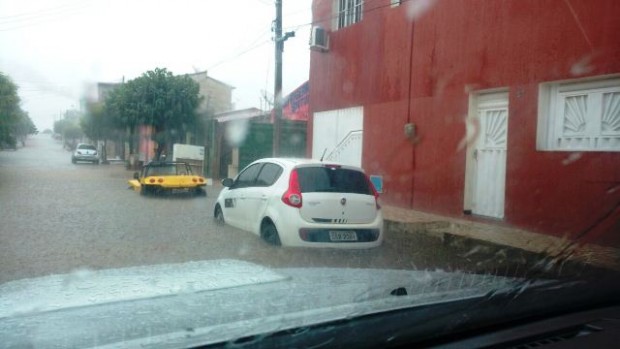 Na Rua da Cerâmica, no Bairro Araçá, a chuva foi tanta que chegou a causar alagamento, como mostra a foto acima, feita por um internauta. Na imagem é possível ver que num determinado ponto da rua a água chega a cobrir os pneus dos carros.