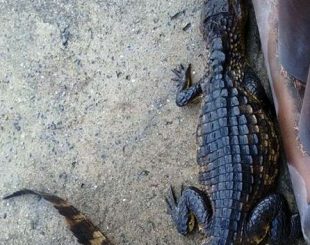 As chuvas que caíram na manhã desta terça-feira (19), em João  Pessoa, levaram um jacaré a sair nas ruas.