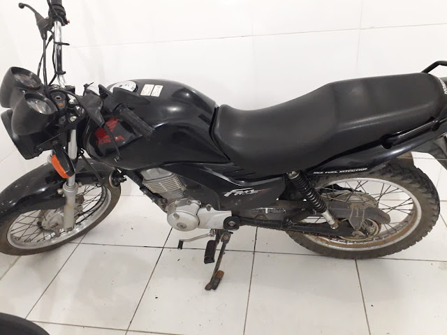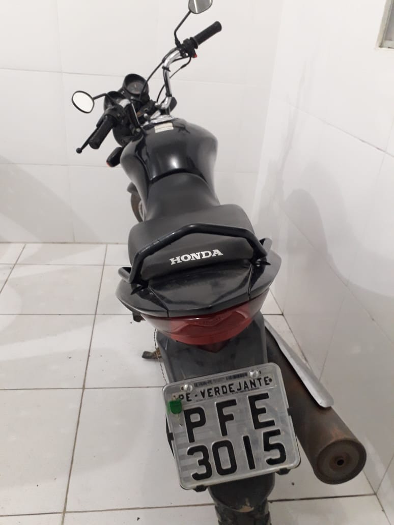 No local onde os os suspeitos estavam foi encontrada uma moto modelo Fan preta de placa PFE 3015 Verdejante Pernambuco com queixa de roubo e um capacete com as mesmas características nos assaltos de uma das motos tomada de assalto na manhã desta terça-feira dia 13.