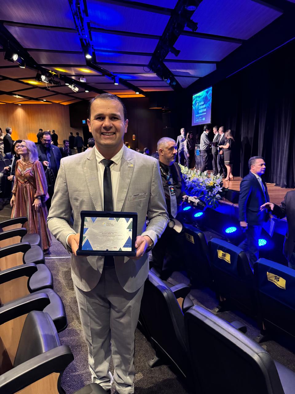 Muito feliz, o prefeito Aldo Andrade esteve pessoalmente para receber a premiação.